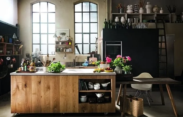 - 黑色优先。这种布局较为罕见,仅适用于宽敞的厨房。不需要使用纯黑颜色——最好加入石墨、湿沥青、灰色和其他色调。在黑色中,地板、餐桌框架和厨房柜体的工作台面制作而成。