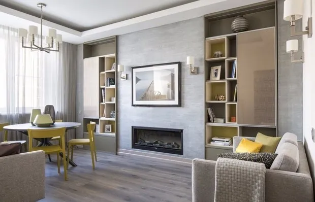 - 高科技。这种风格也完美适配这种颜色组合。主导元素是亮面金属、玻璃、混凝土、砖石。如在极简主义中一样,不应有不必要的细节。然而,现代电器(超现代)是可见的:它们甚至可以有颜色点缀。技术进步相关的图案或抽象黑色图像在浅墙和窗帘上是可能的。最好选择银色或深灰色百叶窗而不是后者。