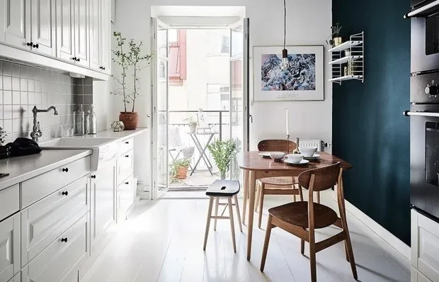 Taganka公寓的这套客厅室内设计主要特色是设计师家具和1960-70年代北欧的纪念品。Vitra有机椅和Fritz Hansen天鹅椅是独特的物体设计作品,立即吸引目光。