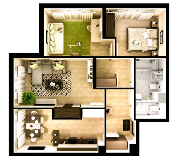 3. 三居室优点。 明显优势——宽敞的开放空间。这种公寓由于隔音效果好,便于使用。此外还有创意空间:三居室公寓允许设置步入式衣帽间、宽敞的储物空间或小型办公室。独立卫生间也很方便。