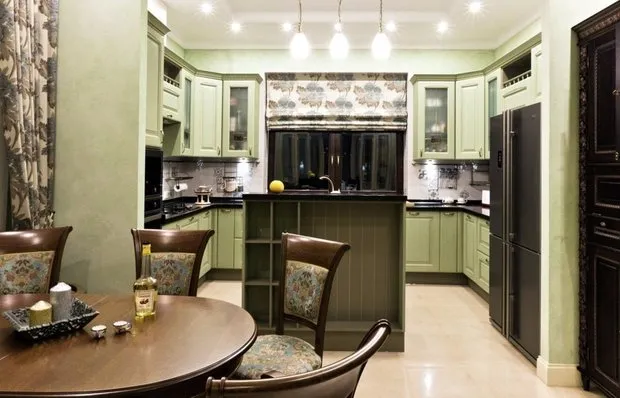在单色调中标准窗户尺寸的情况下,建议购买与墙面色调相同的天然材料窗帘。有趣的是,一种比内装深一色的轻薄丝绸或缎面窗帘。