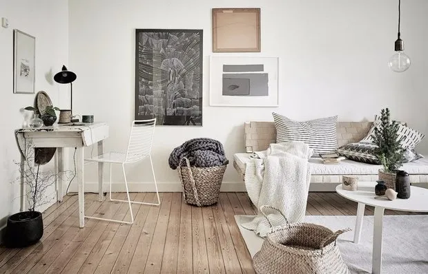 墙上挂画不应过度。要么选择一块大的玻璃画作,要么选择几幅小的软框画。