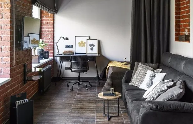 一张小床、舒适的沙发、椅子、紧凑的衣柜和小桌子,采用浅色调将使其更具吸引力。