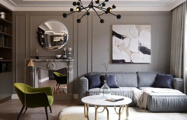 装饰艺术风格的豪华舒适客厅在设计中最具时尚和相关性的方向。奢华与功能、优雅与时尚完美融入现代生活节奏。这是超凡脱俗的室内设计,每一件物品都诉说着主人的繁荣。