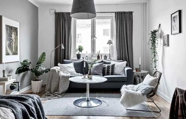 在色彩搭配上,他们选择了宁静的灰色,完美地与木质色调相协调。由于设计师在纺织品方面的精妙处理,这种灰色看起来并不冷清或死板。她用纹理覆盖物装饰家具,靠垫和亚麻罗马百叶窗上添加了优雅的格子图案。蜡烛、壁炉中的木柴和大型玻璃灯笼完美营造出山间小屋的迷人氛围。