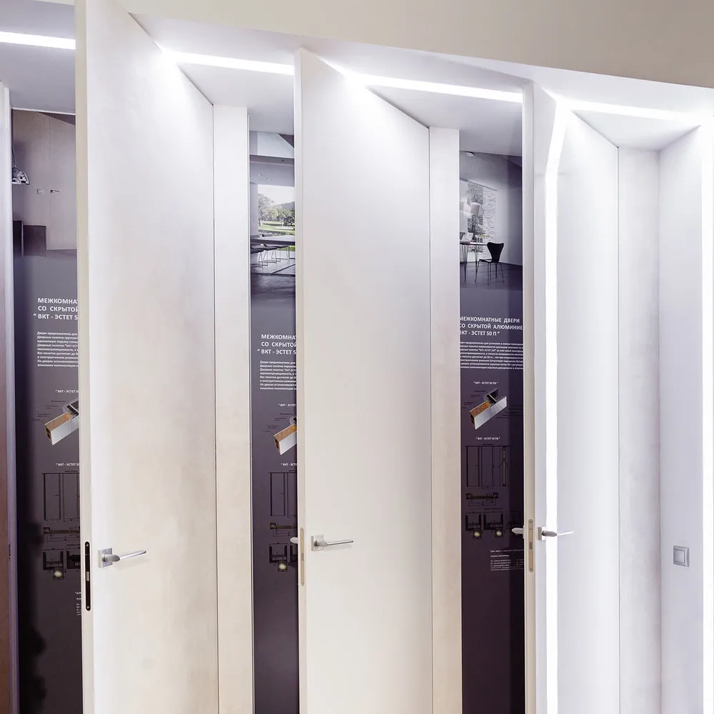 它们与普通室内门不同之处在于不可见——只能通过细缝察觉其存在。展厅提供多种选择。