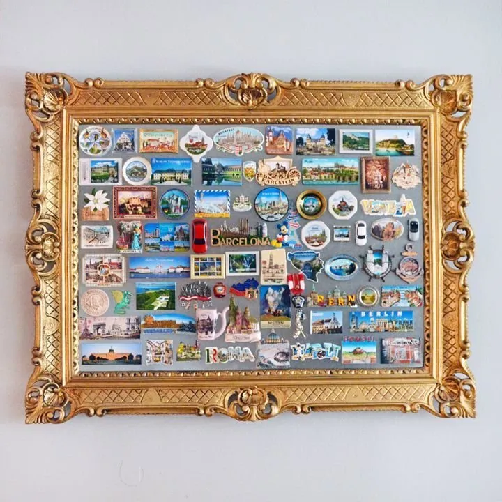 我们都从旅行中带回纪念品,但不幸的是,冰箱门上的这些收藏往往看起来不美观。一个很好的解决方案是磁性板。