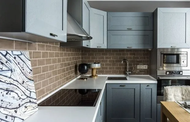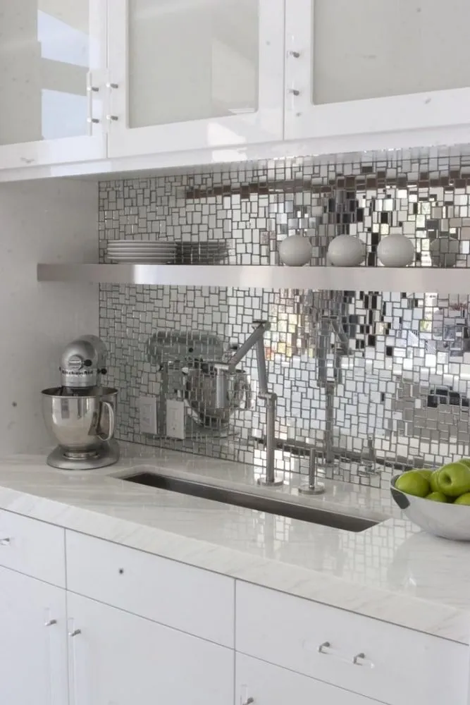 光泽柜门、镜子(包括镜面家具、瓷砖、马赛克)、金属等反光材料是扩大视觉空间的绝佳助手。这一点在小厨房中尤其重要。