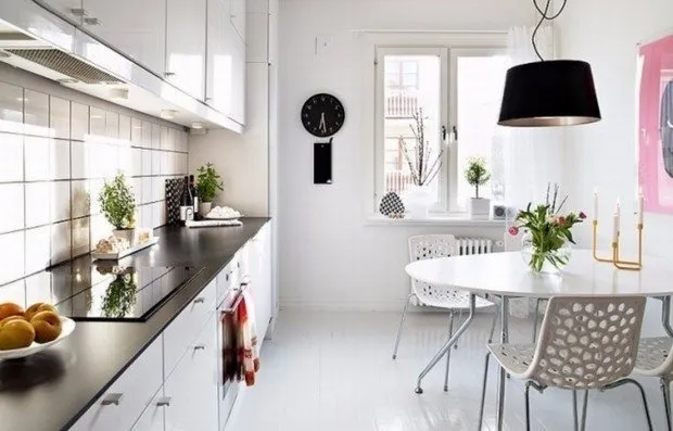 面积超过11平方米的形状合适的厨房——对许多房主来说是一个梦想。有足够的空间放置大桌子、吧台或甚至一个小客厅、储物系统和洗碗机。