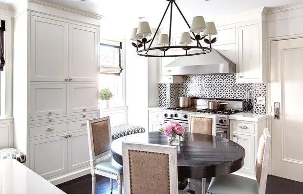 经常很难在小厨房中放置一张完整的餐桌并提供足够的座位。这些建议有助于解决这个问题。