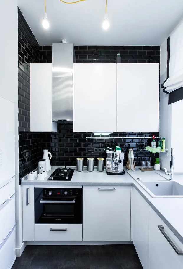非标准橱柜布局、放弃餐桌、冰箱上的磁性置物架、迷你电器和智能储物——如何让小厨房变得舒适。