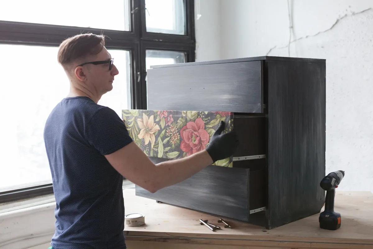 墙纸碎片、一点油漆和我们的分步指南——只需这些即可将旧宜家衣柜变成艺术作品