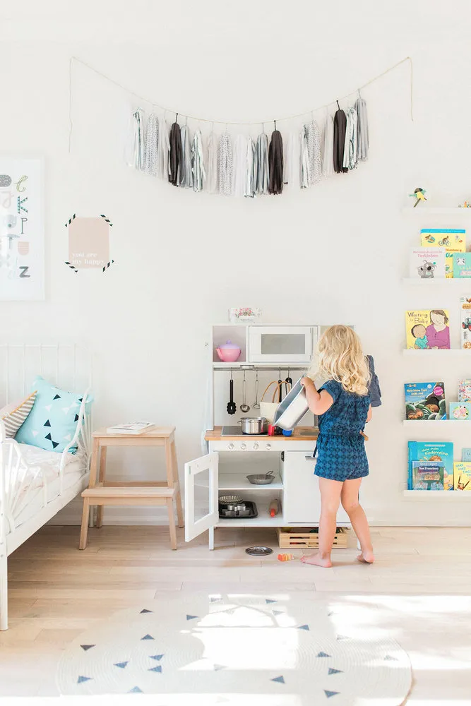 对于人工照明,整个房间应使用柔和扩散的光线。游戏区只需顶部照明即可,而工作区域则需要额外照明(台灯和壁灯)。