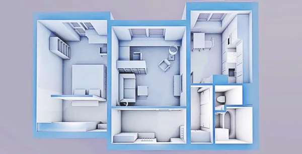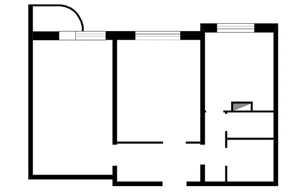 P-3M系列两居室公寓的原始布局。翻新前主人公的公寓