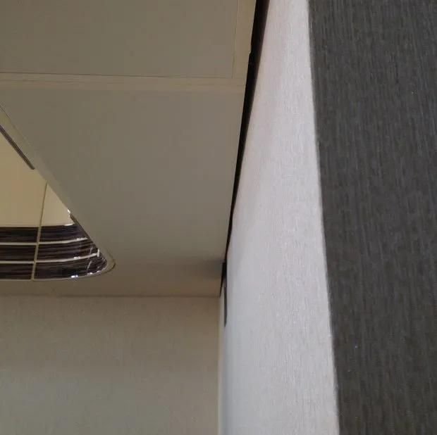 厨房所在墙体的夹角应为90度。可以轻松检查——拿一个普通的架子放在墙角,如果架子摇晃或背后出现缝隙,则说明角度不直。重要的是:确保测量人员记录了这一情况。