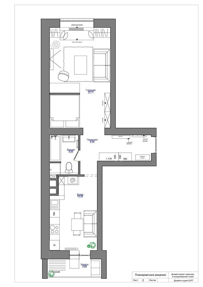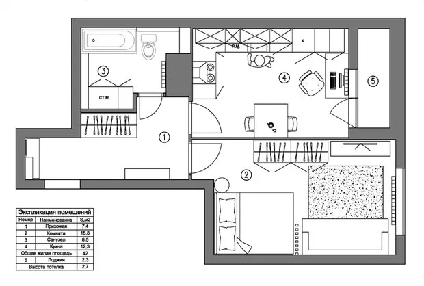 为了创造这样的空间,设计师叶卡捷琳娜·孔德拉季尤克建议在凹槽中安排卧室,并将加热的阳台用作客厅。
