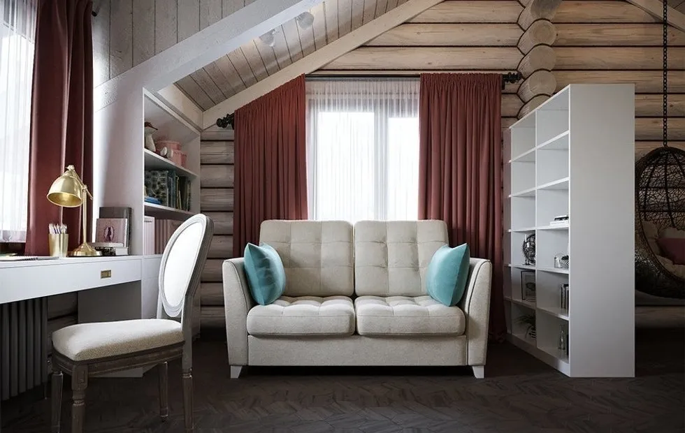 - 床放置在原本厨房的位置,利用壁龛设计。为了使这个区域更具私密性,安装了窗帘。