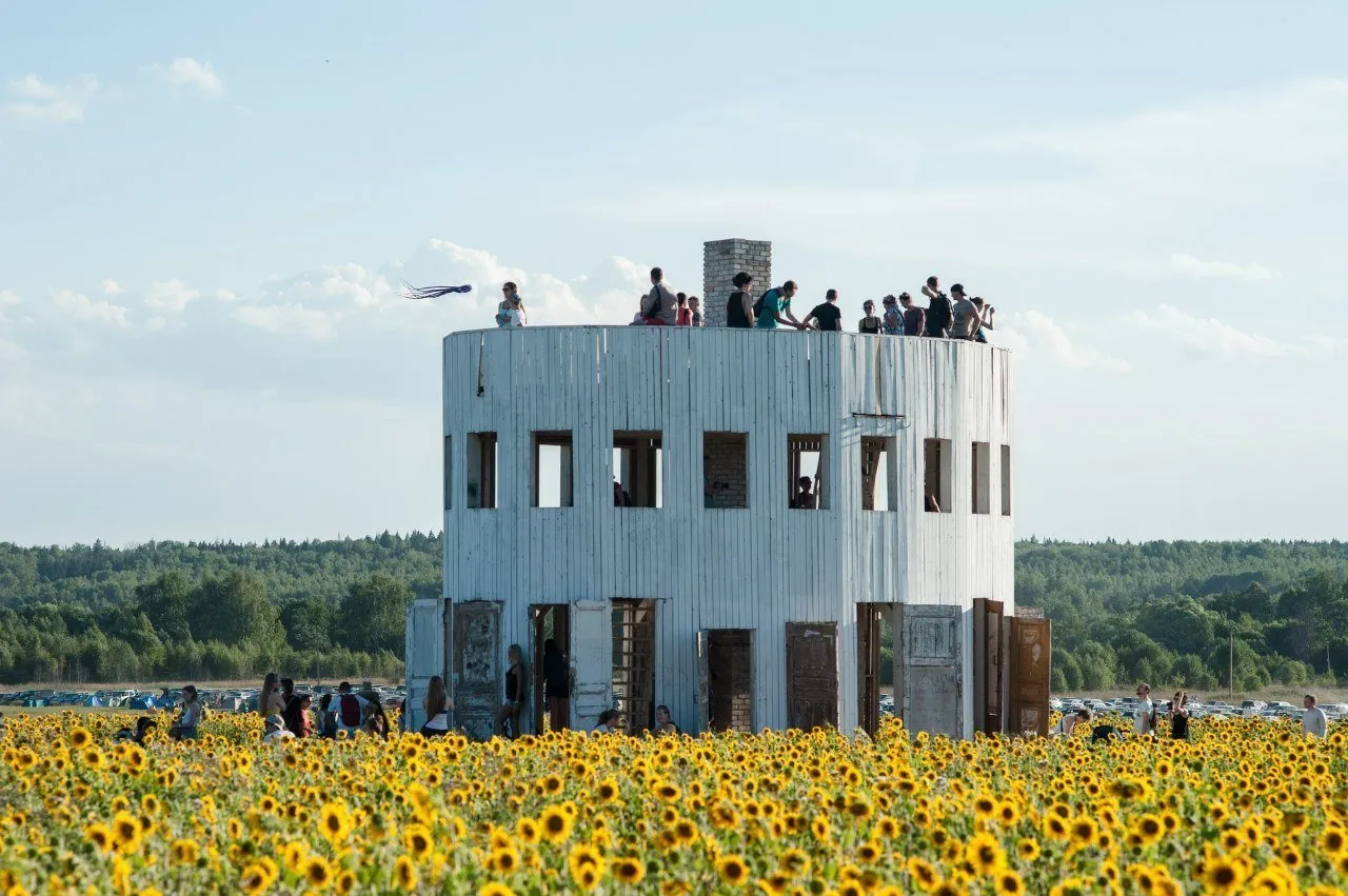 第十三届景观艺术作品节的重头戏是建筑师 Alexander Brodsky 展示他的“PO-2别墅”。这栋小巧的别墅由 PO-2 混凝土围栏板建造,内部贴有木材。尽管其规模不大,却能容纳多达十人。