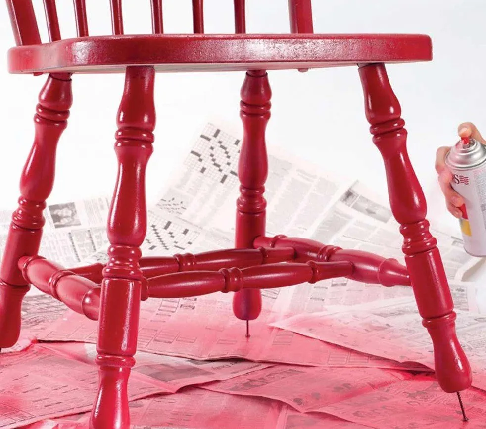 为了便于上漆,可以在椅腿上拧入螺丝但不要完全拧紧。这样一来椅子就不会粘在地板上了。
