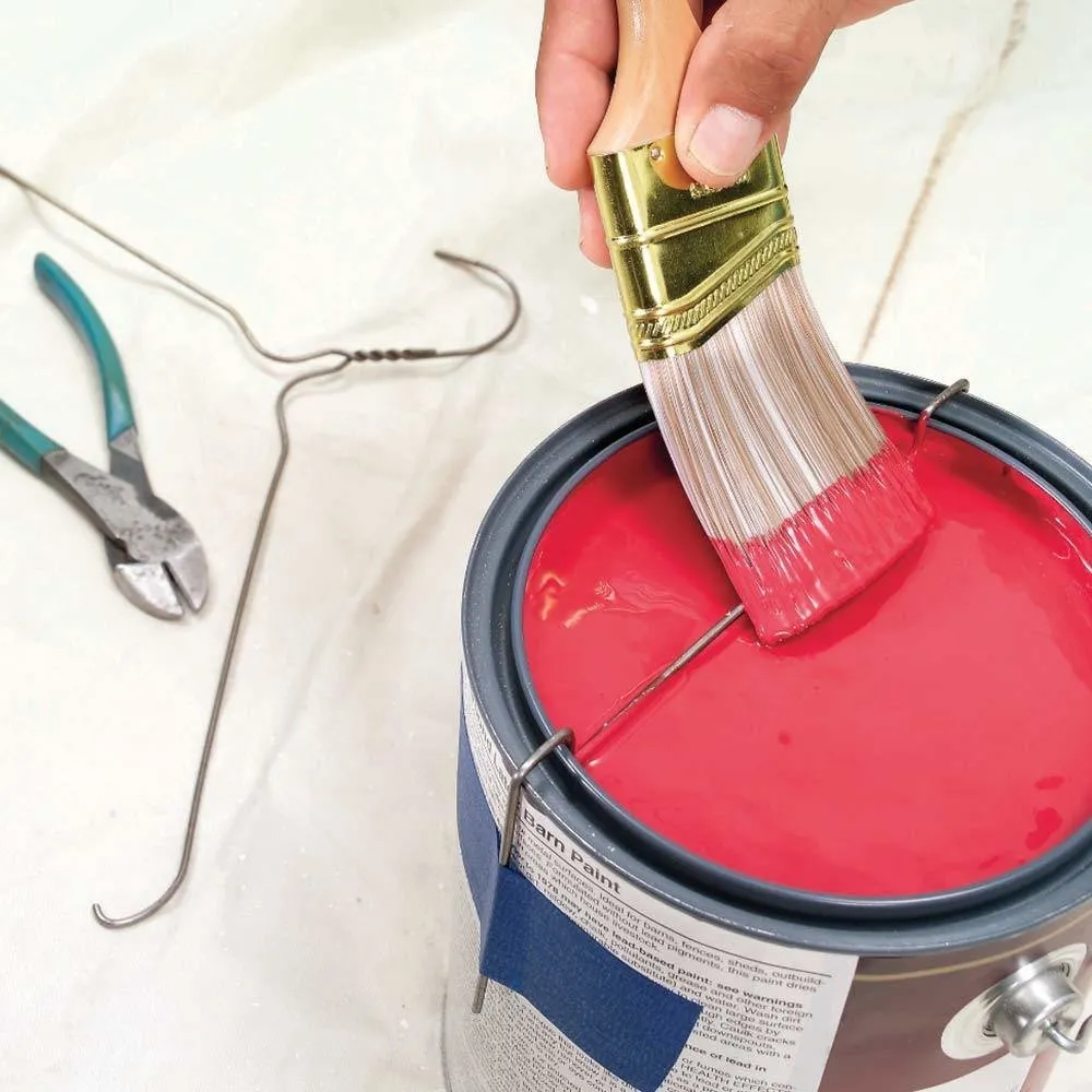 很简单:在油漆容器上固定一个结实的橡皮筋或铁丝,然后擦掉多余的油漆。