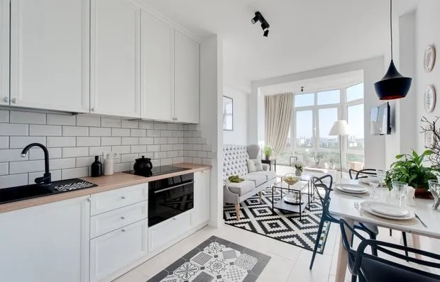 如果公寓中没有足够的空间设置完整的衣帽间,也可以在浴室中安排。该区域和布局允许设计师Oksana Tsymbalova将空间划分为多个区域,并为存放衣物分配了充足的储物空间。