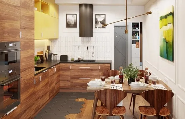 为了不使复杂而深沉的烟熏色调显得过于繁复,并突显其美感,设计师在室内加入了大量白色“线条”元素。白色用于窗户、门、开关和插座、门框及踢脚线。厨房安装了白色陶瓷水槽,选择了浅色窗台和类似大理石的台面。房间中大量使用白色家具和配饰。