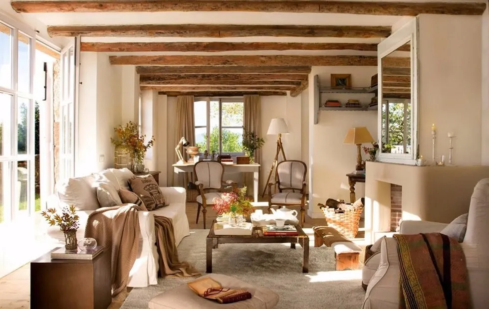 地板也由天然“大地色系”木板铺设,贯穿所有房间。复古家具、复古灯具以及跳蚤市场淘来的宝贝为原本温馨的室内增添了更多魅力与旧时光感。