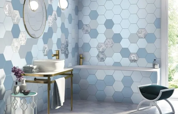 深蓝、绿、灰及酒红色通过墙面处理、橱柜颜色以及家具、毯子和抱枕的布艺融入室内设计中。