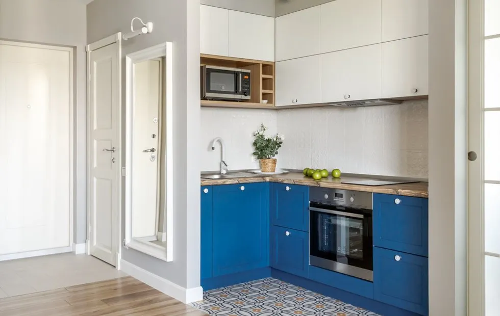 厨房和客厅合为一体——家庭成员和客人晚上在此聚集。厨房区域设有多个工作台面:一个是厨房岛台,另一个是橱柜台面。当多人同时使用厨房时非常方便。