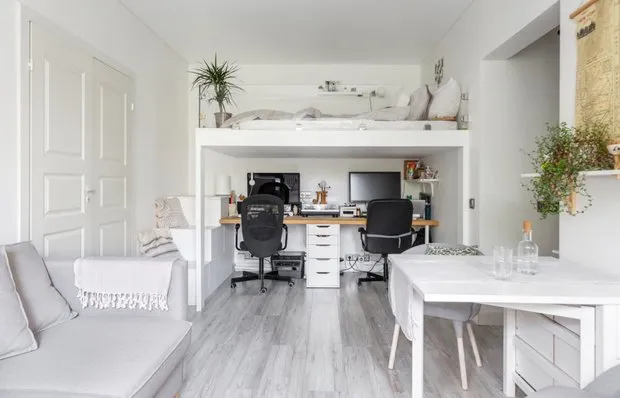 这座位于丹麦的小屋并不大,但也不至于太小。设计巧妙的布局:一层空间容纳了宽敞的厨房客厅和三个带浴室及露台入口的房间。长长的走廊通向各个房间。后方隐藏着一个带洗衣机和烘干机的独立洗衣房。