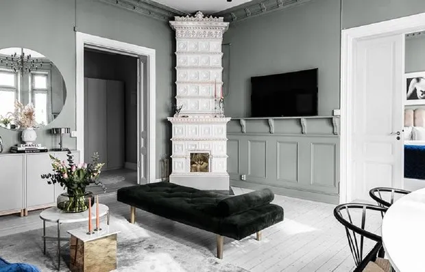 房屋仅使用天然材料装饰:由橡木制成的厨房橱柜,地板也采用灰色橡木地板,浴室则以大理石收尾。