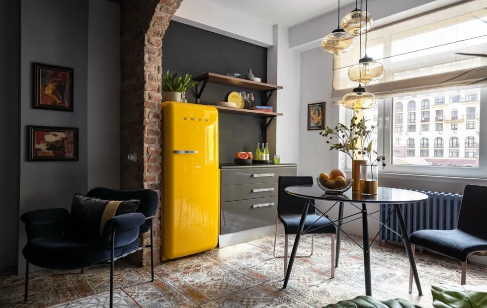 从一开始,谷仓的历史就对设计师有利,温暖的木质和石材色调与藤编吊灯、橡木家具以及金色和绿松石色的室内细节相结合,使任何室内空间都显得温馨舒适。这正是所需的一切。