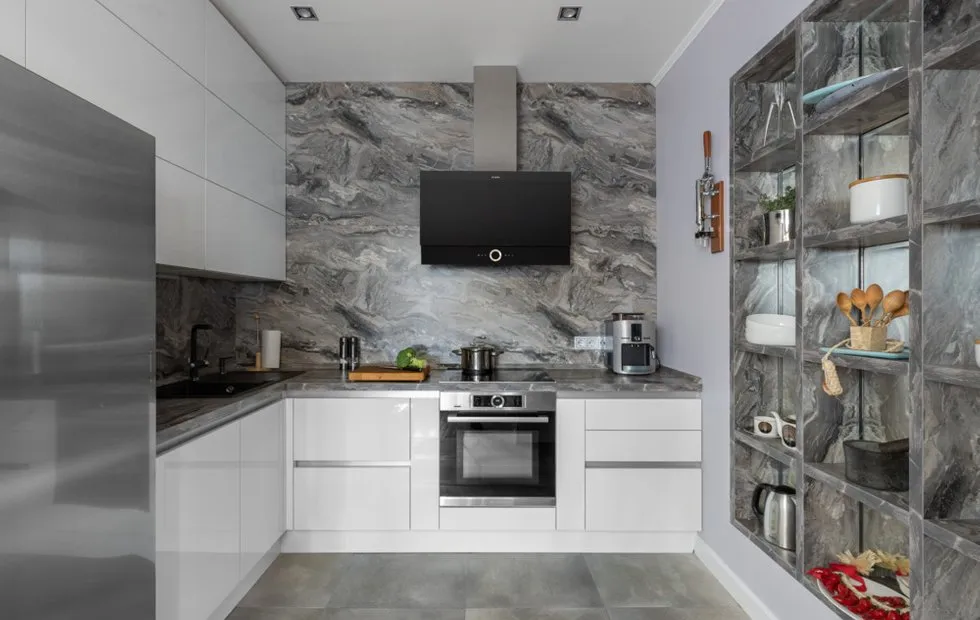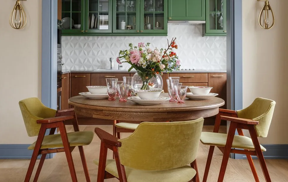 如何在不增加额外墙体的情况下将厨房与客厅分开?设计师选择了一种由玻璃砖制成的隔断。客户在Avito上找到并购买了这些玻璃砖,然后在生产设施进行清洁。