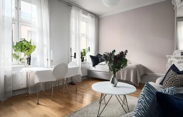 Anton Proshakin使用U型隔断来划分房间的一部分作为工作区。由于透明玻璃,即使在这么小的空间里,工作也十分舒适。