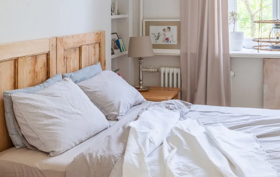 在布置这间卧室时,我们使用了浅色壁纸,并用木条进行装饰。其间点缀的辅助灯光在晚上为室内增添温暖氛围。顺便说一句,使用这种木条也可帮助调整房间比例。