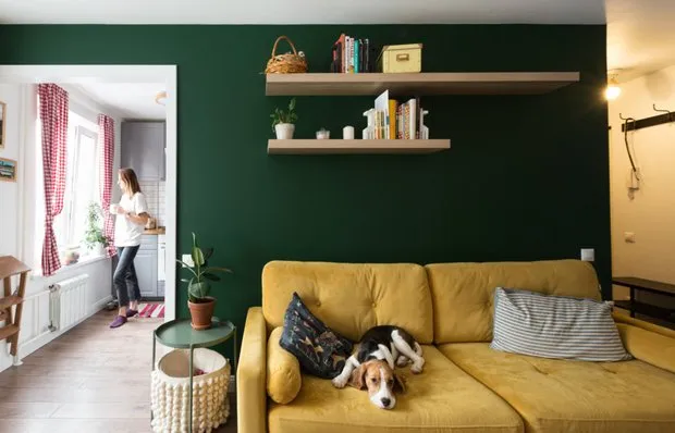 装修风格如内部一样简洁。一些房间的墙壁采用木工板,客厅则贴有印花壁纸。地板在房间里使用暖色调木材,在浴室中使用加热瓷砖。