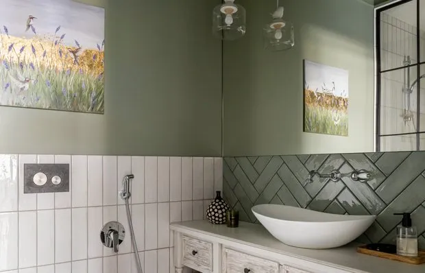 为避免成品宜家衣柜显得过于单调,设计师塔季扬娜·伊万诺娃加入了鲜艳的点缀——她使用丙烯颜料,并在柜门上复制了厨房背板的几何图案。效果令人印象深刻!