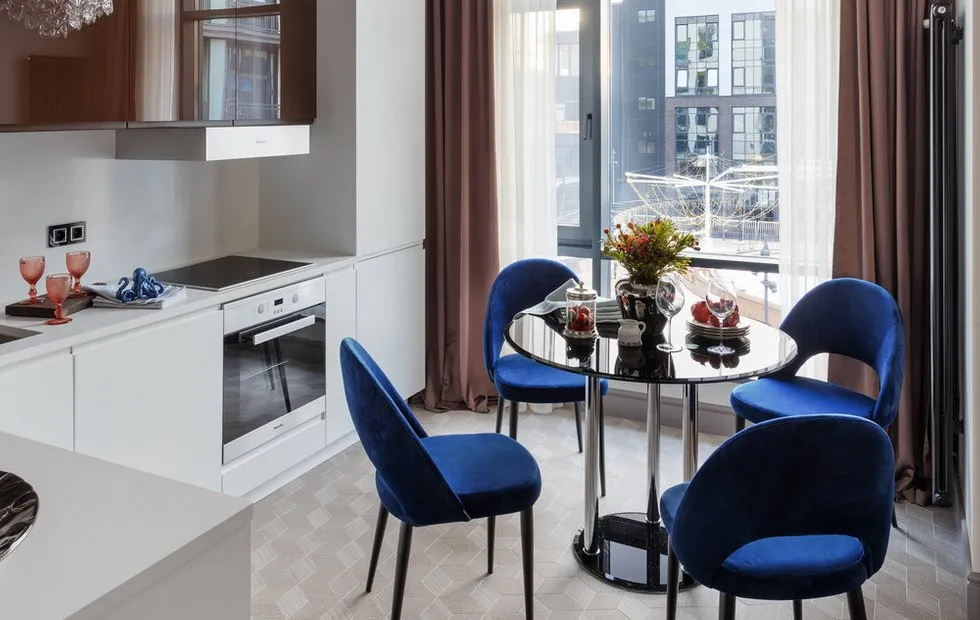"我们将空调隐藏在家具和壁龛中,以保持室内欧洲风格的氛围,"设计师阿琳娜·柳塔亚说道。