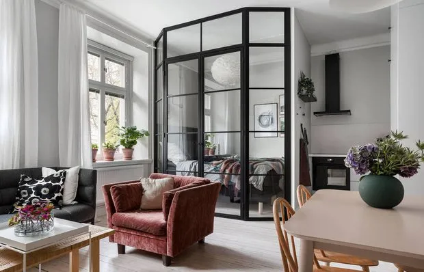 装饰不可取消,所以只需减少开放书架和小装饰品的数量。此外,书籍最好储存在封闭式橱柜中——这样它们不容易变质。