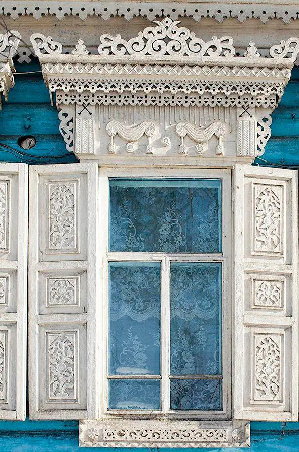 此外,俄罗斯村庄的长者回忆说,木制百叶窗在夜间关闭是为了“阻挡窥探的眼睛”。那时候窗帘或百叶窗尚未出现。如果一个家庭在傍晚仍然可见并能被观察,这被认为是不祥之兆。