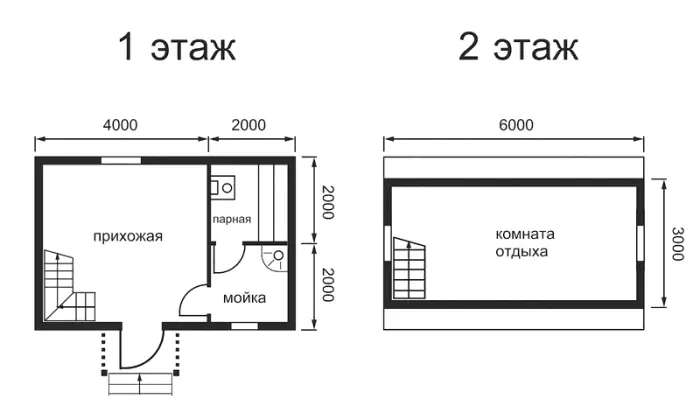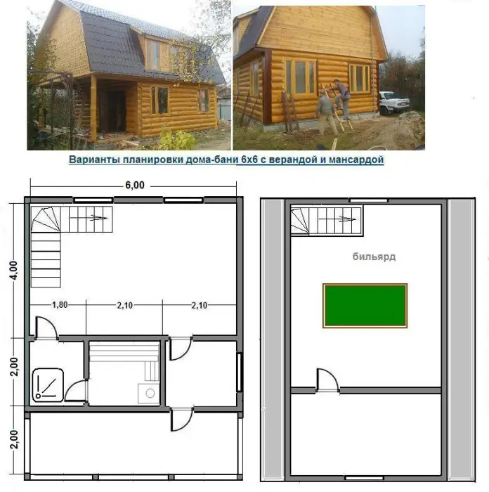 6x4带阁楼的浴室是一个经济实惠的选择。总面积:24平方米。标准包与6x6型号类似。
