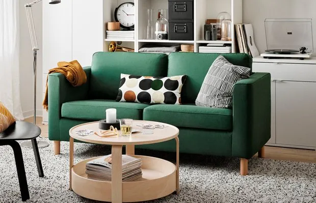 图书博主安娜和她的丈夫一起设计了这套公寓的室内。客厅和厨房区域通过带有假梁的天花板统一起来,营造出乡村风格。厨房与客厅之间通过吧台隔开。宜家的储物柜完美地嵌入壁龛中。门板涂上了可以写字的白板漆。抽油烟机则用开放式的木质搁板装饰。