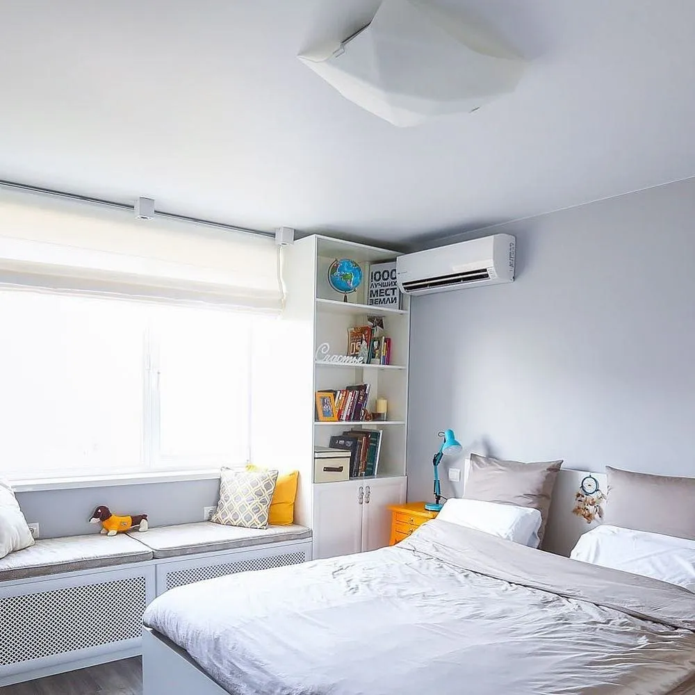 设计师将厨房与客厅打通,并将餐桌移至客厅。这样一来,5平米的空间内成功安置了转角厨房橱柜和所有家电设备。由于房屋已通燃气,项目中设计了玻璃推拉隔断,需要时可完全隐藏于墙内。