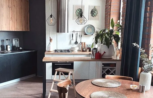 创建工作区域最受欢迎的方式是在窗边放置一张桌子。一些富有创意的人选择利用窗台,将其扩展并变成工作台面。再加上一盏台灯和悬挂式储物架,就可以愉快地工作了。