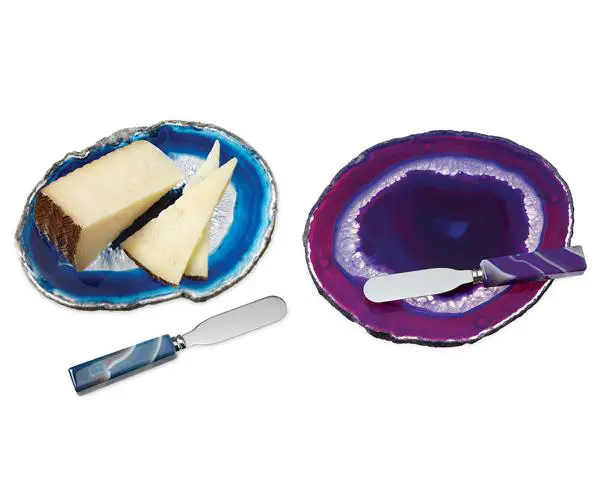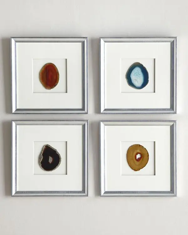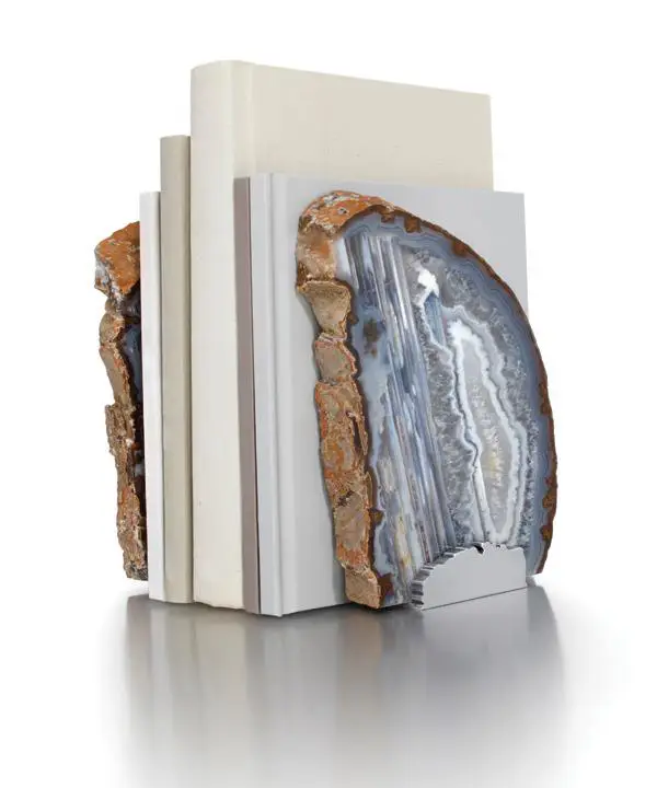 你可以简单地使用玛瑙切片来装饰梳妆台、咖啡桌或任何其他表面。玛瑙有书挡、杯架、餐具,甚至砧板等产品。墙面装饰中配有玛瑙切片的作品看起来尤为优雅。
