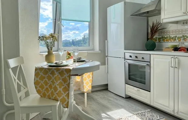 该公寓采用标准的欧式两居室布局:开放式厨房客厅和独立卧室。为储物设计了两个内置衣柜。洗衣机放置在卫生间内——为此将浴缸替换为淋浴设备。