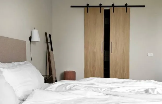 主卧室主卧室温馨且实用。设计了大型储物系统,经过细致规划和客户确认,确保所有物品都有合适存放位置。只考虑定制储物系统,因为“顶天立地”的成品很难找到。