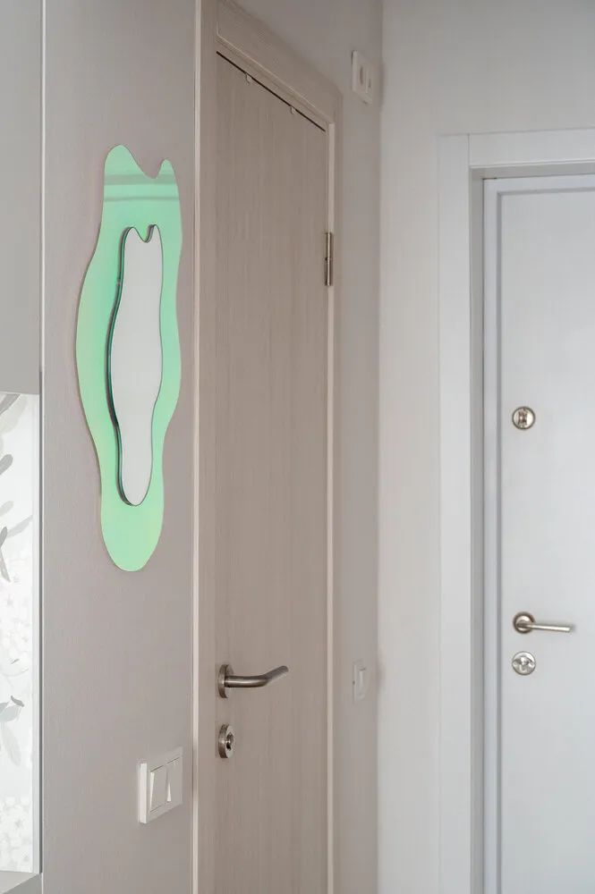 设计:安娜·马尔科娃整体色调以明亮为主,绿色点缀体现在布艺、装饰甚至卫生间装修中。镜面材质有助于视觉上扩大空间,而精心设计的灯光则使空间更加温馨。