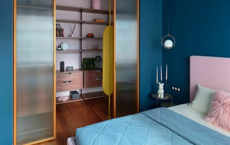 设计:安娜·贝利金娜该项目的核心理念是“隐形厨房”。下部橱柜采用木皮饰面,更像客厅中的家具;而上部门板则涂成与墙面相同的颜色,在视觉上融入空间。这种设计能够隐藏操作区域,使整体装饰更加统一。
