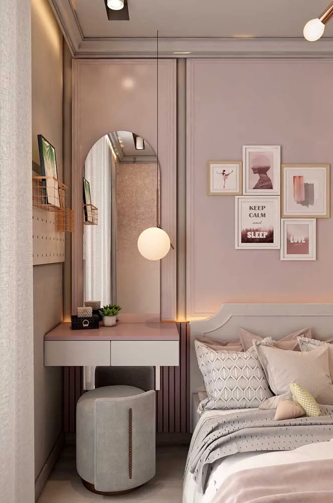 整个公寓可以大致分为两个独立区域:公共区和主卧区。前一部分包括厨房与客厅,其中再分为两个子区域:面对壁炉的休闲区和接待客人的区域。主卧区则巧妙地隐藏在门后,与墙面无缝衔接。这扇门如此优雅地融入空间,若非平面表面的拉手,几乎难以察觉其后是完整房间。主卧区包括衣帽间和卧室及独立浴室,还连接着一间可改造为儿童房的客房。